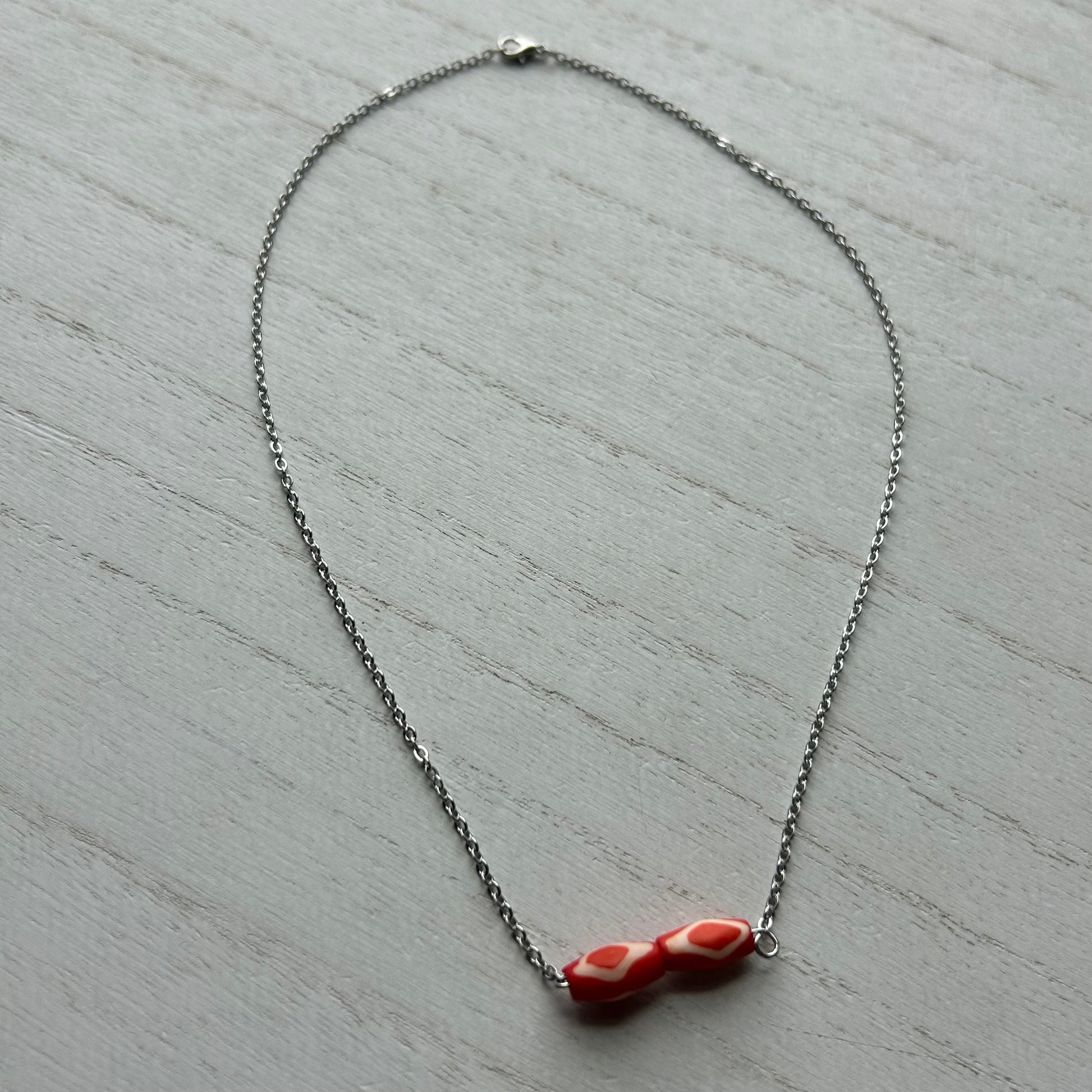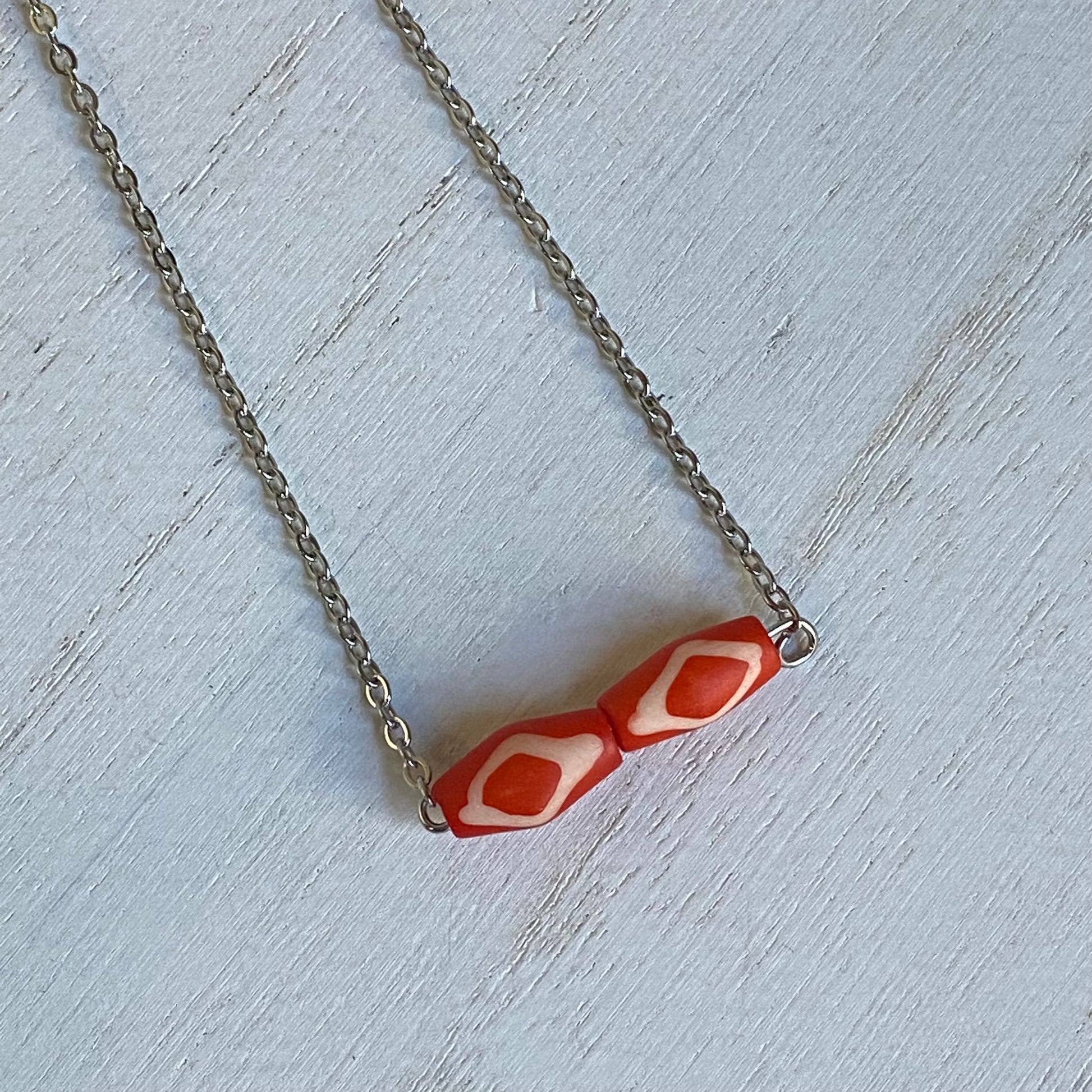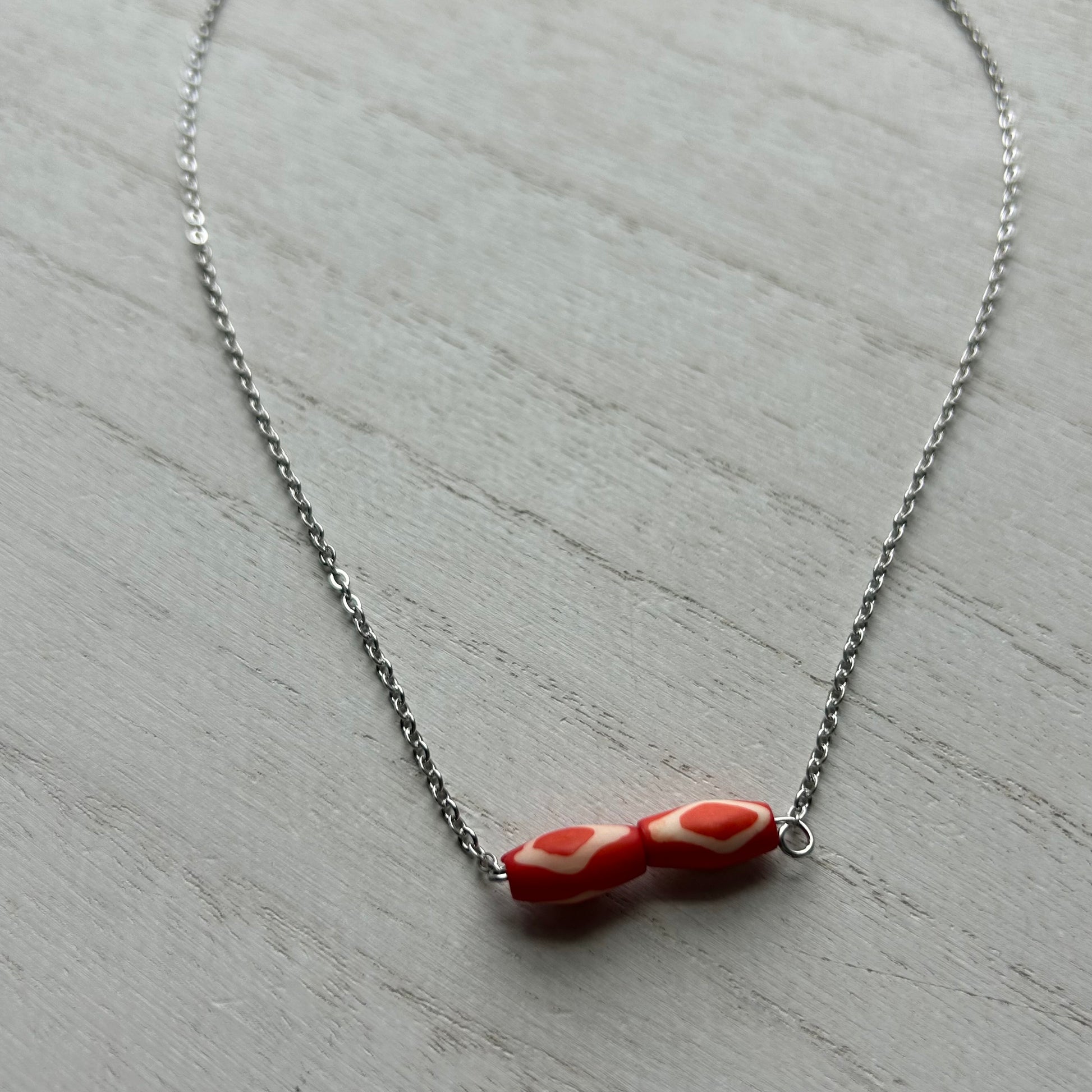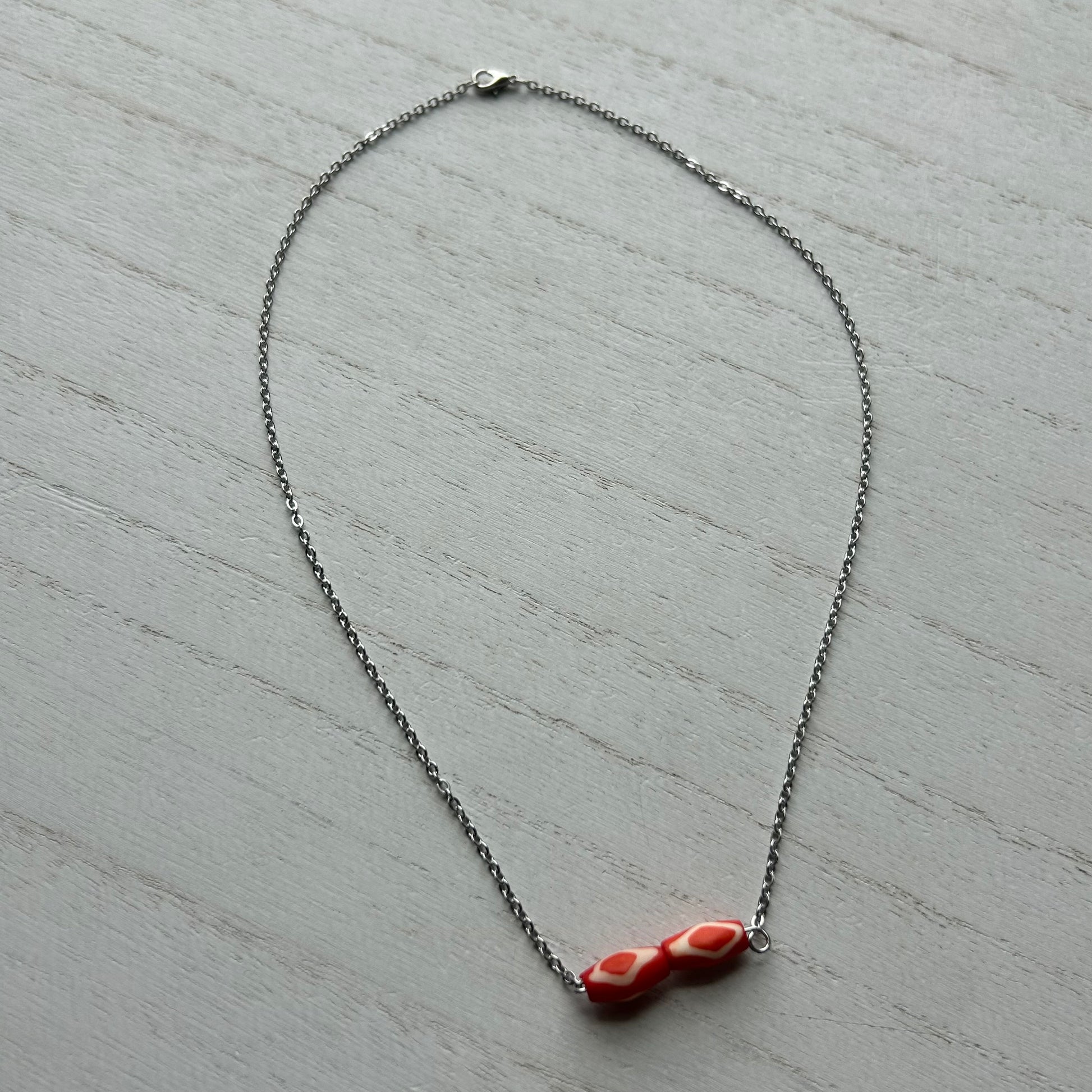 made with bone beads and stainless steel chain